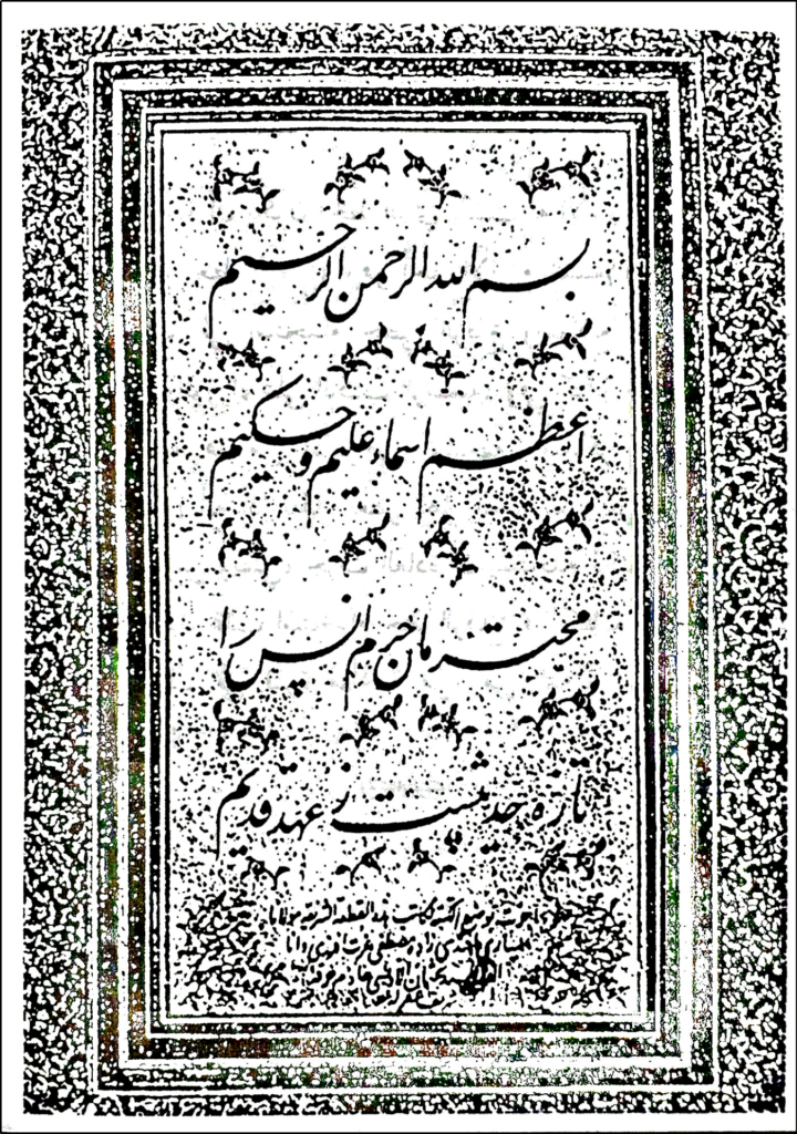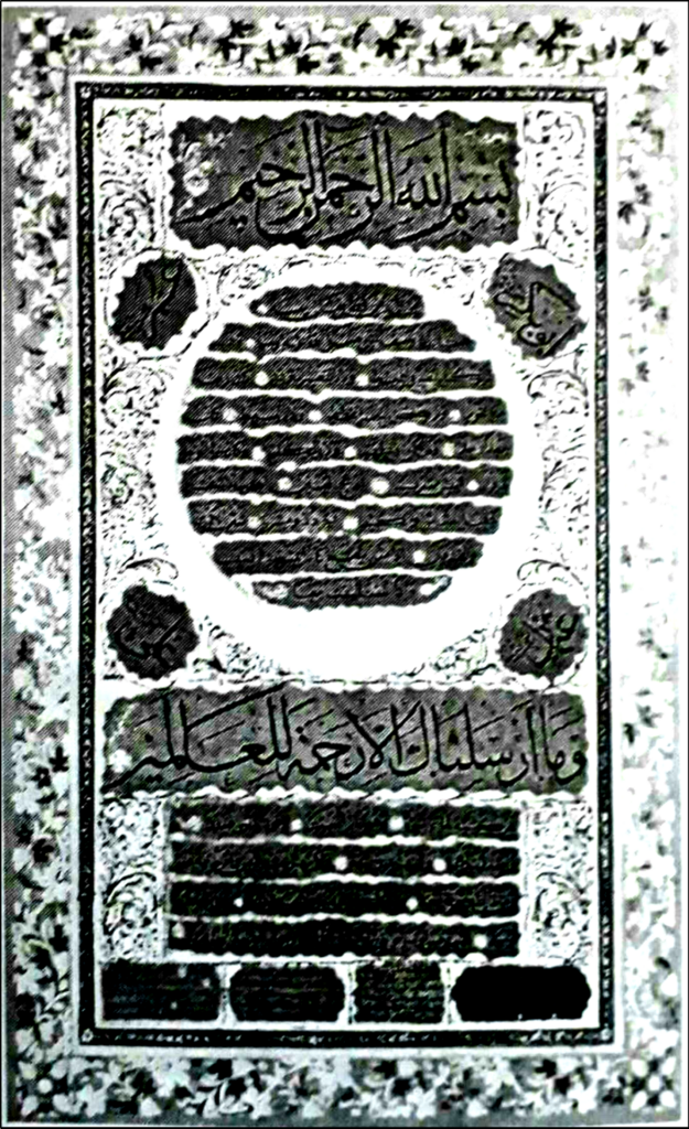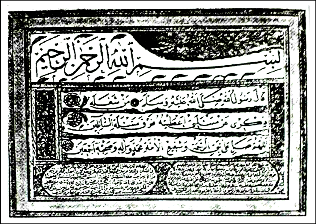 «نمقت نحلة وعطية من كريم مبين، وصدقت بكلمات ربها وكانت من القانتين، زهيراء زمانها، وحميراء أوانها، ذات اثنتي عشرة سنة، تلك القطعة المليحة سمية السعدية، أعني حليمة ابنة من أنبته الله نباتا حسنا فتقبلها ربها، وزيّنه بها سرا وعلنا، فلا غرو للنسوة اللاتي قطعن أقلامهن وكتبن، وللنساء نصيب مما اكتسبن، غطاها الستار بجلابيب القانتات العابدات السائحات، ما تليت بالعشي والإبكار في الكتاب الأكرم، إذ يلقون أقلامهم أيهم يكفل مريم، قره وحرره العبد الآثم كاتب السراي الخاصة محمد راسم عفا العفو عنه بحبيبه أبي القاسم، في السنة التاسعة والستين بعد المائة الألف[121] من هجرة من عليه وعلى آله الصلوة والسلام ألفا بعد ألف»[122].