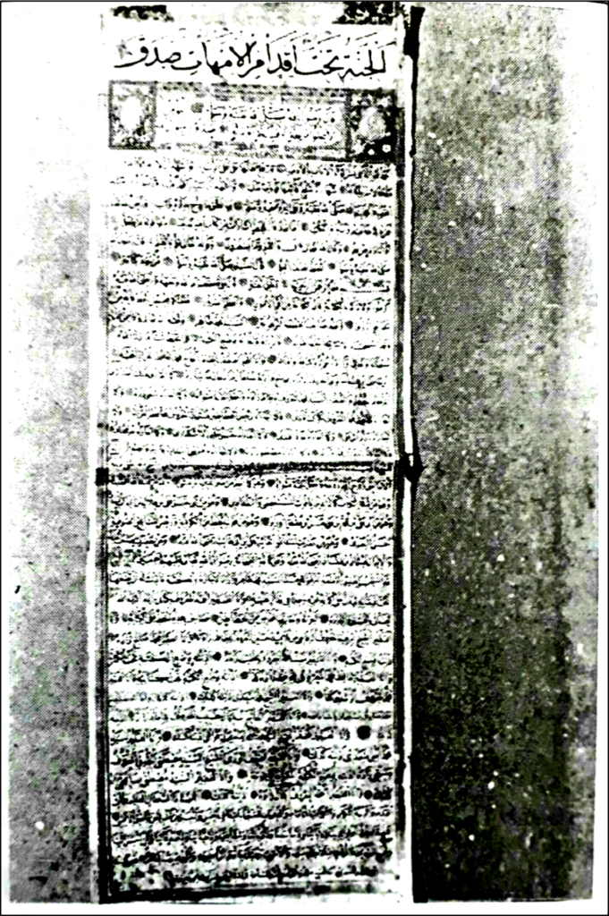 - «.. فأجزته أن يوسم كتاباته وسائر وآثاره برسم اسمه ووضعه كتبه تحت ما كتبه...»
