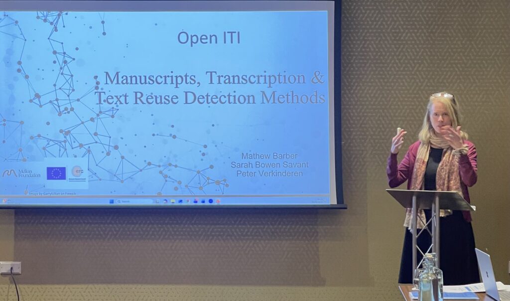 The first speakers were Sarah Bowen Savant and Mathew Barber, who gave a presentation entitled "Open ITI: Manuscripts Transcription and Text Reuse Detection Methods".