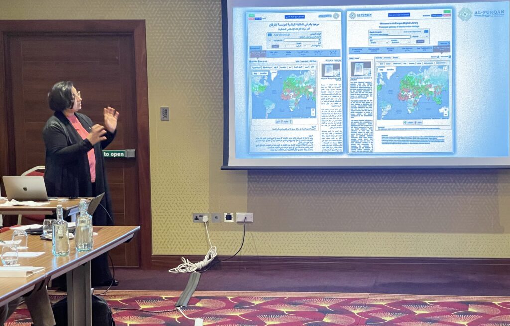 The eleventh and final speaker was Karima Benaicha, in charge of Datasets and Online Database at Al-Furqan Foundation, who gave a presentation entitled "Al-Furqan’s E-Database: Towards a Gateway to the Islamic Written Heritage".